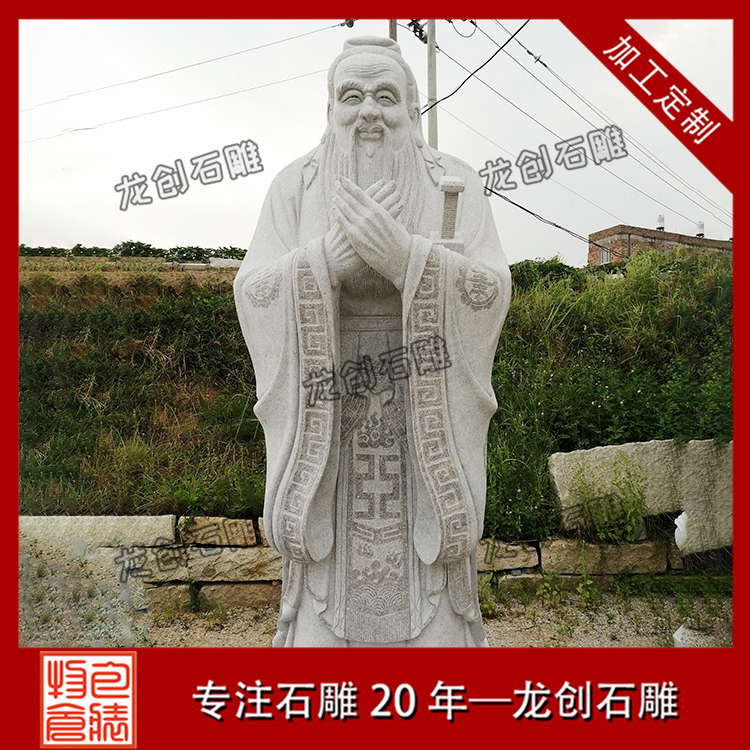 一般比較常見的石雕孔子像有比較簡單的頭像,也有站姿的石雕像,基本上站立姿態(tài)的石雕像選擇性更遭到人們喜歡,有手里握著書卷拿在胸前,一手背在身后,抬頭挺胸,目光瞭望的石像,也有將雙手交叉并在胸前,可是咱們能夠看到交疊的手是不顯露大拇指的,標志著謙恭有禮,而四指并攏,也代表著四海之內皆兄弟,有著友愛、友誼的標志意義。