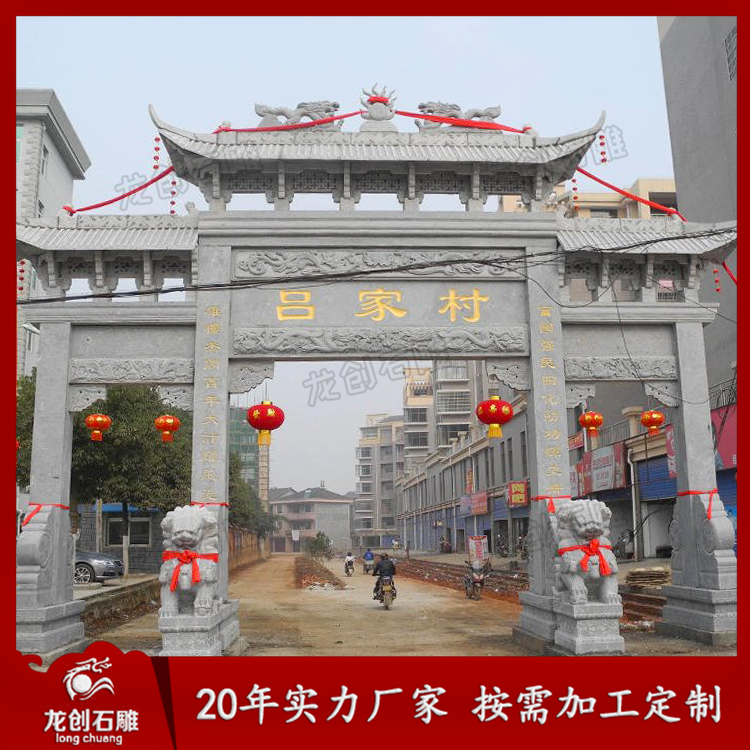 各種各樣的村莊石雕牌坊,讓人感受到了一種和諧繁榮昌盛的文化,村莊牌坊可以美化村容村貌,是農村人精神風貌的一種體現和象征,雖說石牌樓花了點錢,但值得。那就是牌樓的興起是一種盛世祥瑞的象征。也都屬于裝飾類建筑物。這些建筑物的不斷涌現,只能說明如今的農村經濟繁榮、社會穩定、更多的農村人對未來的生活充滿了憧憬。