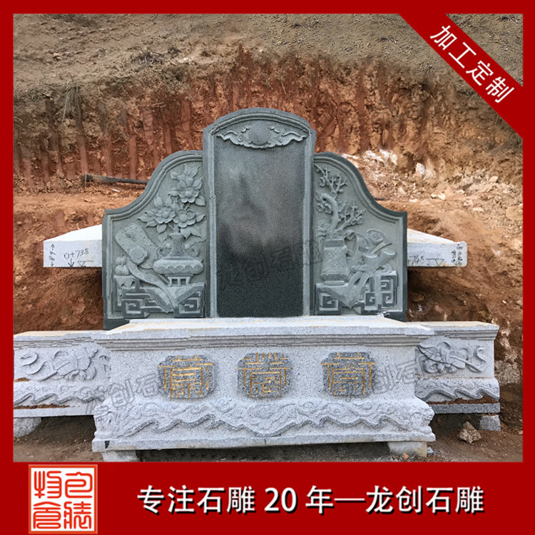 二、結(jié)構(gòu)比較復(fù)雜,復(fù)式石雕墓碑采用復(fù)式的結(jié)構(gòu)就表示墓碑會(huì)更加的接近傳統(tǒng)的豪華套墓,比如復(fù)式墓碑的圍欄就特別長(zhǎng),平臺(tái)也特別大,墓碑板和墓碑祭拜的地方也會(huì)相對(duì)大一點(diǎn)。在結(jié)構(gòu)方面,復(fù)式墓碑需要對(duì)墓碑所處的地方全部的整平,石材和雕刻的部分也會(huì)相對(duì)多一些。