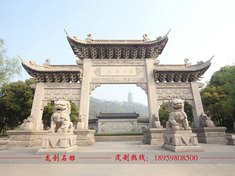 景區石頭大門定做當然在材質的選擇上都比較講究,為保障景區石頭大門本身的美觀性和牢固性,在材料挑選上也都有非常高的要求。綜合現在景區石頭大門的雕刻看,主要用料有青石、花崗石、大理石等,要說比較合適的景區石頭大門雕刻用料,還是以花崗石為主,花崗石的材質比較堅固,花色也都比較多,能夠雕刻出更為細致的牌樓作品。在挑選景區石頭大門雕刻用料的時候就要做好全面考慮,注意材質的完善性和全面性,要能夠保障花色統一,石料完整,盡量要避免石料出現磨損或者缺口,以免導致牌樓雕刻出現問題,影響到牢固性和穩定性使用。
