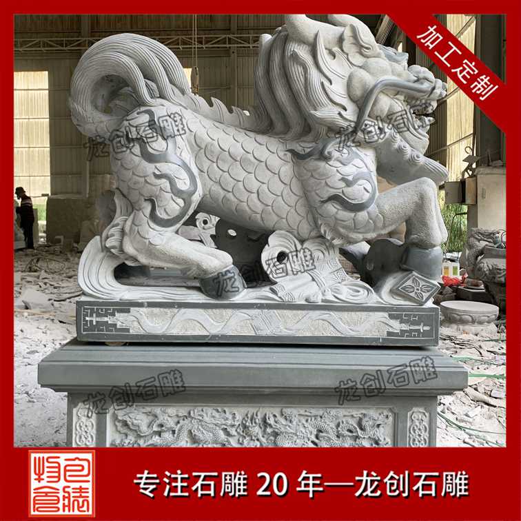 麒麟,集獅頭、鹿角、虎眼、麋身、龍鱗、牛尾于一身,融合了多種瑞獸的特征,盡顯祥瑞之相。它被視為仁獸,代表著吉祥、太平、長(zhǎng)壽與聰慧。石雕麒麟線條流暢,身姿優(yōu)雅,在文化場(chǎng)館或宗教圣地,麒麟石雕傳遞著神圣與美好的祝福,讓人們心生敬畏與向往。