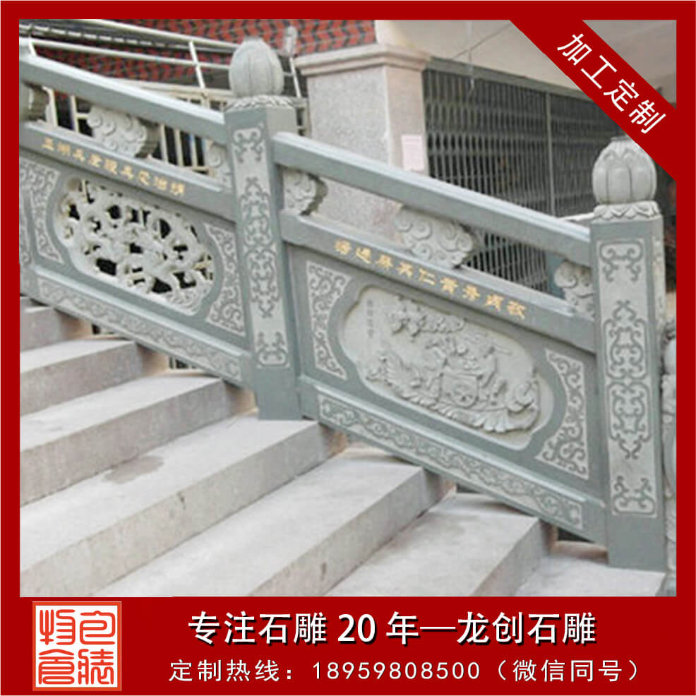 石頭欄桿一般出現(xiàn)在古建筑大殿周?chē)蛎妗⒙访嫔希鸬奖Wo(hù)行人安全外,石頭欄桿還可裝飾環(huán)境,又能豐富人們的活,陶冶人的情操,給人以美的享受。石頭欄桿、石頭欄桿的構(gòu)成石頭欄桿有柱頭、立柱、扶手、花托、欄板、地鋪幾部分組成。透空的帶花格或圖案的實(shí)心欄桿,也有實(shí)心的欄板局部透空或全部不透空的欄桿。