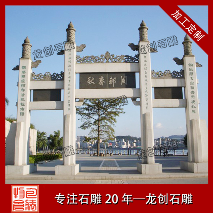 關(guān)于修建一座石牌坊要多少錢(qián)?什么價(jià)格都有,價(jià)格七八萬(wàn)的有單門(mén)牌坊,十來(lái)萬(wàn)的有一般的村口石牌樓,還有三十多萬(wàn)的豪華石牌樓,石頭牌坊報(bào)價(jià)主要和圖片樣式、尺寸大小、石材、雕刻工藝有主要關(guān)系。
