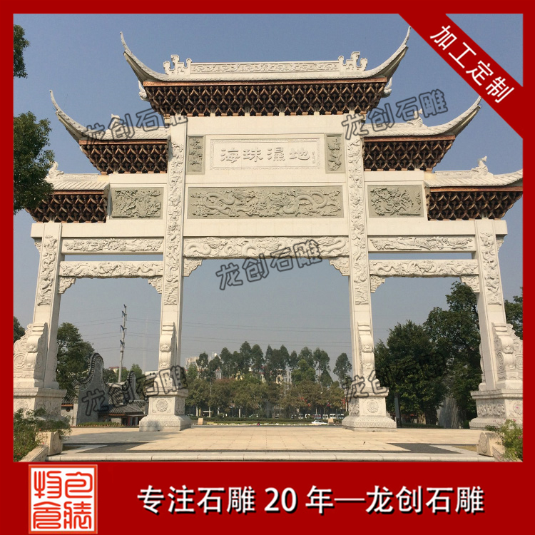 惠安龍創石雕長期供應三門五樓石雕牌坊 三門五樓山門石雕、各式各樣石雕牌坊、石雕牌樓等,也支持來圖來樣定做,歡迎來電咨詢。